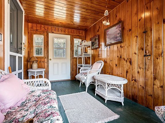 Classic simplicity best describes this charming, move-in-ready 3 bedroom 1.5 bathroom ranch that combines the ease of single-level living with timeless appeal. Inside, discover a bright, open floor plan with beautiful maple flooring, an inviting eat-in kitchen featuring ample cabinetry, and a charming brick hearth with mantle. The three spacious bedrooms are filled with natural light, and a convenient main-level laundry room adds practicality. Downstairs, the partially finished basement offers flexible space for a home office, gym, or entertainment area. Step outside to enjoy peaceful moments on the three-season porch or the deck, both overlooking a gorgeous, tree-lined 1.5-acre lot—your private oasis. This low-maintenance home also boasts a newer metal roof and a reliable, on-demand propane generator. Comfort, convenience, and tranquility await. Welcome home!