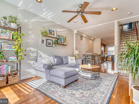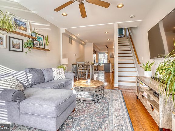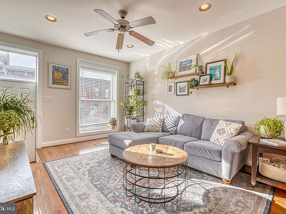 Welcome to 223 S. Bouldin Street, a lovely light filled home that was thoughtfully renovated with both charm and style. With gorgeous warm wood floors throughout, high ceilings on each floor, a lovely updated kitchen with acres of counter and cabinet space as well as a large island for prep or dining, this home doesn't disappoint. The first floor has a wonderful open floor plan with a large living and dining room that flows into the large kitchen. The second floor has two bedrooms, one of which--the primary suite--has a newly renovated en suite bath that is magazine worthy! The second bath, the hall bath, has double sinks and a large shower. The rear bedroom is bright and cheery with great closet space and an entrance to a two tiered roof deck with panoramic views of the city skyline and lush Patterson Park. The basement, while currently used for storage, could easily be finished for additional living space! Finally, don't miss the rear parking pad for added convenience. This one checks all the boxes!