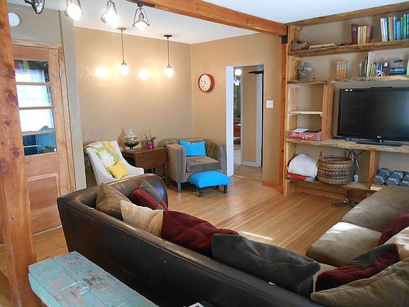 Older home that has been well maintained with hardwood floors through out most of the main floor. Updated kitchen, with new appliances, open dining room and living room with large windows. Two nice sized bedrooms with a large full bathroom. Utility room/mud room is on the main floor. Downstairs includes a storage area, bedroom with egress window and another room for guests or family room also with egress windows. Large lot with chicken coop, raised garden beds, older two car garage, and a play house. Plenty of room to park a trailer as well in a fenced off area. Lawn is fenced and cross fenced. Great property.