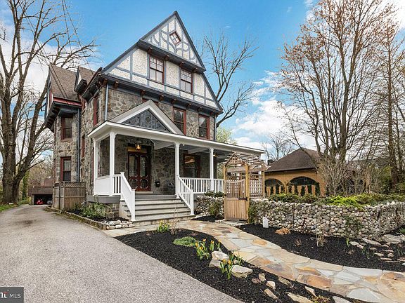 Welcome to 223 S. Chester Road, a stunning, historic and spacious home located in the highly sought-after Borough of Swarthmore. As you approach the home you are greeted by the incredible wrap-around, covered porch which has been lovingly re-created by the current owners, restoring the front elevation to its original grandeur and beauty. You will immediately appreciate the craftsmanship of this home including a handmade porchlight and stained glass, refinished hardwood floors throughout, soaring high ceilings, incredible millwork, interior shutters and period tiles. The front entry hall is light-filled and open, highlighted with a wood-paneled staircase and original doors leading to both dining room and living room. A powder room is tucked to the left of the entry hall. To the right is a bright and spacious living room with large windows and glass French doors and transom glass that flood the room with natural light, as well indirect lighting creating a bright welcoming atmosphere. The decorative coal fireplace is a centerpiece of the room with its carved mantle and gorgeous tilework. Straight ahead from the foyer, the dining room is perfect for entertaining, with its large bay windows pass through to the kitchen. Connecting the two rooms is the family room, featuring another decorative fireplace and pocket doors in both openings, enabling an open floorplan that is not typical is most homes of this era. Off the dining room is a well-appointed, spacious kitchen complete with ample storage, gas cooking, a center dining island and plenty of counter space. The second staircase leads upstairs from the kitchen. Off the back is a sizeable deck with canopy, offering yet more outdoor living space. Upstairs, you'll find spacious bedrooms with large closets, beautiful hardwood floors, high ceilings and plenty of natural light. Central air has recently been added to the two upper levels. On the second floor there are four bedrooms – the smallest of which is currently serving as a yoga/meditation space but could also be a wonderful home office. The layout and adjoining doorways creates the option of using multiple rooms as a large suite. There is a full hall bath, and a wonderful laundry room completing this story. The third level contains 2 more wonderful bedrooms, a full hall bath, and a bonus room which is currently a home office with coffee bar. This entire floor could be an owners retreat, functioning as a huge single suite, or as 2 to 3 distinct bedrooms, perhaps also functioning as an in-law suite or home for an au pair. The home is zoned R20-two family, and the bonus room could easily revert back to a small kitchen. Back downstairs, step outside onto the large back porch and take in the serene surroundings of the beautifully landscaped yard. The lawn area is equipped with an invisible fence for dogs. A newly installed patio and privacy screen cordwood fence creates the perfect spot to gather and enjoy the outdoors. A raised bed garden is well designed, situated to capture sunlight during the growing season and to be friendly to the farmer’s back. The front yard is recently enclosed with a custom stone gabion wall with planting bed on top to allow greenery to drape down. Inside, the garden are newly planted, appropriately scaled, ornamental maples and dogwoods. The driveway leads back past the home to the garage, and then bends around to the right to lead to Yale Avenue. The detached carport with newer 100 amp service offers plenty of storage space for all your outdoor equipment and vehicles. To the right of the garage, both in front and to the back is additional parking for numerous vehicles. The basement of the home is accessed through the bilco doors, and offers extensive storage area. Conveniently located in the heart of Swarthmore, this home is blocks from local shops, restaurants, schools, train station, tot lot and parks. With easy access to major highways, airport and public transportation, commuting to Philadelphia