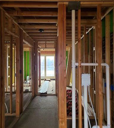 - Open Floorplan, Unfinished Walls, Wood Walls