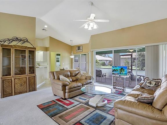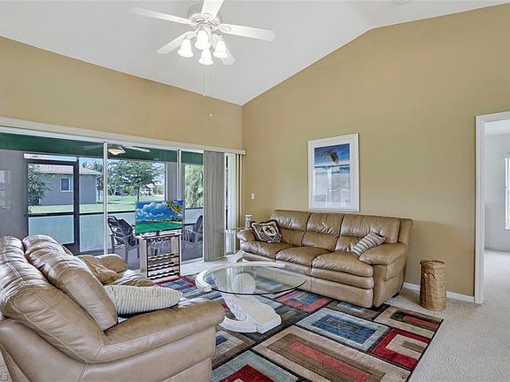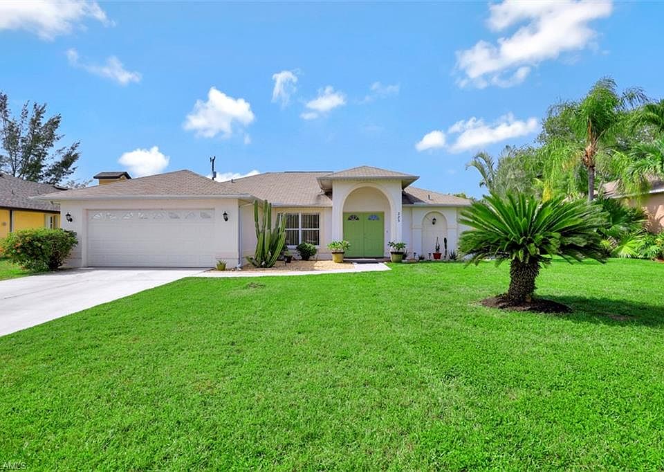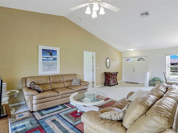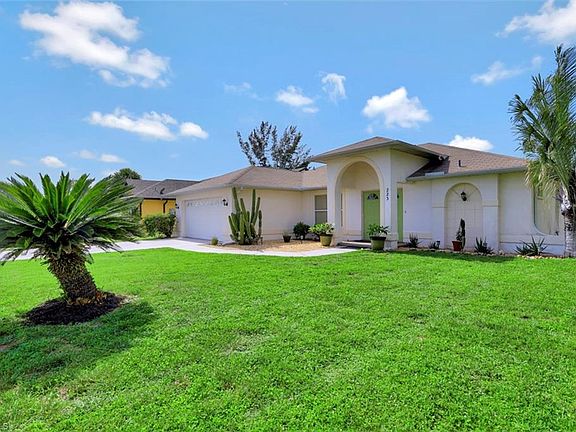 Perfectly Affordable! Whether starting out or downsizing, this open great room with breakfast room, split bedroom floor plan, Cathedral ceilings, indoor utility room, screened lanai and water and sewer are in and paid! Conveniently located mid Cape off Santa Barbara near Veterans for quick access to shopping, dining, entertainment and the Mid Point Bridge for quick access to Fort Myers. New A/C and air handler installed 2018.