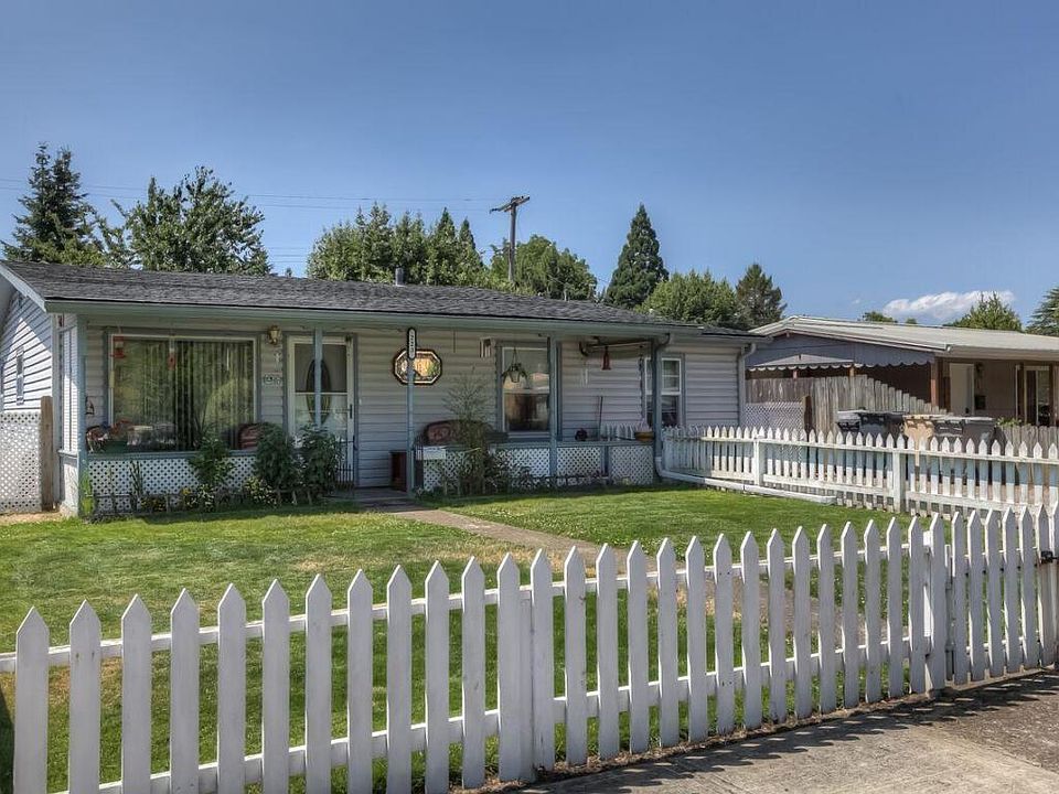 Adorable one level ranch style home with plenty of curb appeal. Charming picket fence with gate and concrete walkway to the covered sitting porch. Inside, you will love the updated dine in kitchen with under cab lighting and loads of storage. Generous sized rooms too. Privacy fenced backyard with paver patio, storage shed, green grass and mature roses. Great place to entertain! New roof in 2014. Priced for immediate sale.
