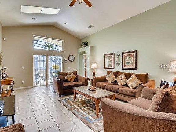 Take a look at this beautiful 5 bedroom, 4 bathroom private pool home. This property is on the popular and well maintained community of Solana in the heart of the vacation home area of Davenport. It has great access to shops, restaurants, theme parks and easy access to all major highways. The community is gated with recreational area and large community pool. The home itself has a spacious living area, formal dining area and eating space in the kitchen also. The master bedroom has walk-in shower, large tub and walk-in closet. There are 4 other spacious bedrooms with 3 bathrooms spaced well throughout the house. The sliding doors from the living room lead to a covered lanai. The private pool and spa area are screened in and allow for outdoor eating/lounging area. The home is currently used as a short term rental and future bookings that are in place can be transferred to the new owner if desired. This home comes fully furnished and is turn key ready for a residential or vacation purchase.