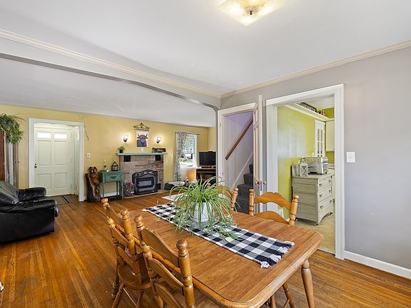 Absolutely charming four bedroom, two bath home with great spaces and a dreamy covered front porch! All the character you'd expect to find in a home built in the 1930s. Two bedrooms and a full bath on each level. Front living room with a fireplace and open to the dining room with a wall of built-ins and window overlooking the backyard. Kitchen with tons of cabinets and an eating area. Upstairs featuring fantastic built ins and great storage. Basement with laundry and a partially finished room perfect for gaming. Fenced in backyard and a two car garage. Updated vinyl windows, electric panel, dishwasher 2021, oven 2017, the washer, dryer, second refrigerator & swings can stay.