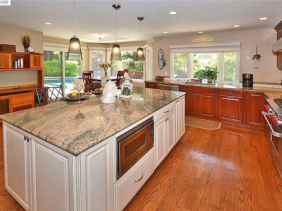 Beautifully remodeled home-great court location! Chef's kitchen w/Wolf range/oven, Subzero fridge, huge center island - great open floor plan. Pebbletech saltwater pool/spa, BBQ island, Las Trampas views. Spacious master w/huge walk-in closet. Surround sound in FR. It's a 10! Open Sat/Sun 1-4pm.