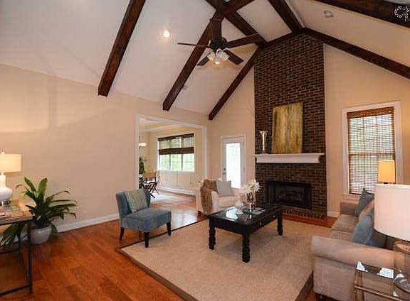 Beautiful Traditional 1.5 story home in Woodland Pond! Situated on a large lot overlooking a common pond, this 4 bed, 3 bath is an oasis from the busy city. Upon entering the home you are greeted by a large, open family room with hardwood floors, vaulted ceilings and a lovely gas log fireplace. The quaint eat-in area connects the family room to the updated kitchen, which features stainless steel appliances, granite counters and tons of cabinet space. The master suite boasts box ceilings, a walk-in closet and a private bath with a dual vanity, garden tub and separate shower. Two bedrooms share the hall bath, while the upstairs bedroom has a private bath. Out back is large yard and deck perfect for entertaining or enjoying an evening outside.
