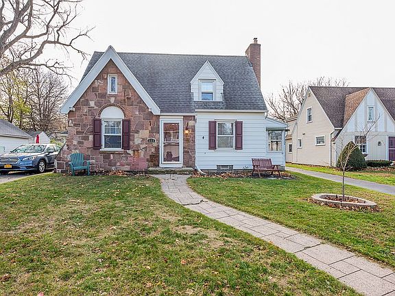 Picture perfect 3 bed cape in one of West Irondequoit school districts most desirable neighborhoods walking distance to I-Square! Charm throughout; arched doorways, built-in bookshelves, and gorgeous hardwoods. Living room with fireplace and attached 3 season porch! 1st floor bedroom or family room offers a view of fully fenced yard with patio. Kitchen breakfast nook and large formal dining room! 2 spacious bedrooms and full bath upstairs. Partially finished basement with dry bar and plenty of room for entertaining! Any offers will be reviewed on Tuesday at 5:30PM.