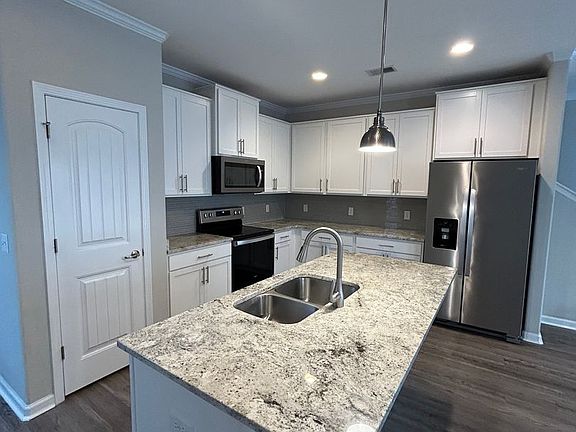 Step inside to an open floor plan perfect for entertaining, complete with a large kitchen island, granite countertops, and 42" upper cabinets for plenty of storage. The stainless steel appliances, including a refrigerator, make this kitchen move-in ready. Enjoy the durable vinyl plank flooring throughout the first floor, bathrooms, and laundry room.