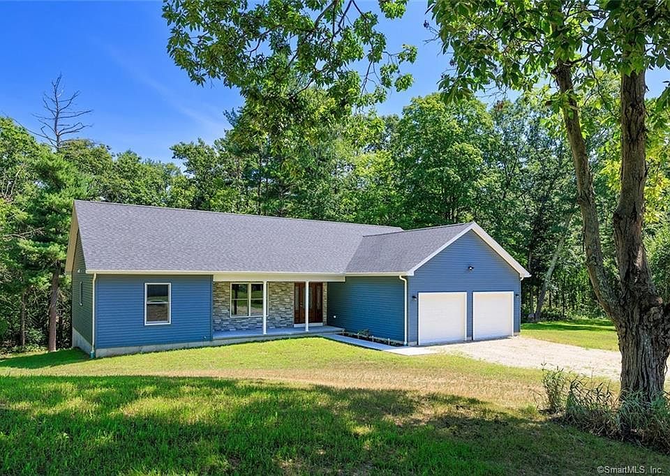 Welcome to this beautiful newly constructed sprawling one level ranch just completed on a quiet country road in Brooklyn. High quality construction materials were used in the construction of this home starting with Anderson double paned wood sashed windows, a Buderus Hydro-Air boiler, and a Smart thermostat. Quartz counters, Stainless Steel appliances, Large center Island & Tile flooring finishes the gorgeous kitchen that is open to the Dining Room with sliders to a 16X12 trek deck. Living Room has a cathedral ceiling with modern gorgeous lighting. The Primary suite has double sink vanity with white Quartz top, His & Her walk in closets and Bruce Hardwood flooring and sits on the opposite end of the home away from the other two Nice sized bedrooms. An added bonus is the walk out basement that would make a perfect home office, family room or in-law suite. Also, there is a separate laundry area with cabinets and countertop off the 2 car garage entry that would make an awesome pantry for extra storage and easy access to the kitchen. Surrounded by the famous stone walls found throughout New England. Let your backyard be your own private oasis.