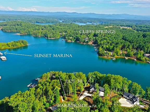 Big Water & Mountain Views! Lot has over 277 feet of waterfront with sandy beach area. Boat slip #8 a very short walk from the back of your home. Lot has a gentle grade perfect for lower level walkout. Lot has ben underbrushed for easy access. Just 15 minutes to Clemson and Seneca, 45 minutes to Main Street Greenville & a short ride to Sunset Marina. VRBO allowed!! Lot lines marked with orange tape. See septic permit in supplements.