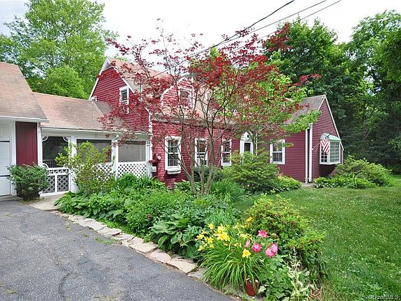 Move right in and enjoy the view! Fabulous curb appeal set back from road with level front and back yard and beautiful view from yard and out kitchen window. Great floor plan with over sized dining room for the largest of gatherings. Family room with fireplace is spacious enough for two sitting areas. Bedroom on first floor is perfect for guests or could be private office or den. Cedar closet on main level. Many newer appliances in sunny kitchen and laundry. Two car attached garage enters to covered screen porch breezeway leading to kitchen. Upstairs are three nice sized bedrooms, 2 cedar closets, unfinished attic space for storage or future finishing, full bath and hardwood throughout. Lower level has 330 s/f partially finished room and is a perfect getaway. The 3rd bay garage entering basement is perfect for a home brewing set up with its own water supply. Great commuting location- only 10 minutes to Bethel train station.