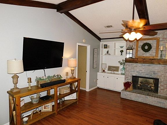 Well cared for home with a large private backyard that is completely fenced The home has pretty , new wooden counter tops in kitchen , bead board in many areas of the home. Laminate in the gathering area, tile in kitchen and dining. The guest bath has updated counter tops and sink with laminate flooring. The front porch of the home has large cedar wrapped post and it is completely covered. The fourth bedroom was added with a large walk in closet and is on the opposite side of the home just off the kitchen. The back yard is shaded and has a large covered deck for our enjoyment. this is a great home Call your agent today !