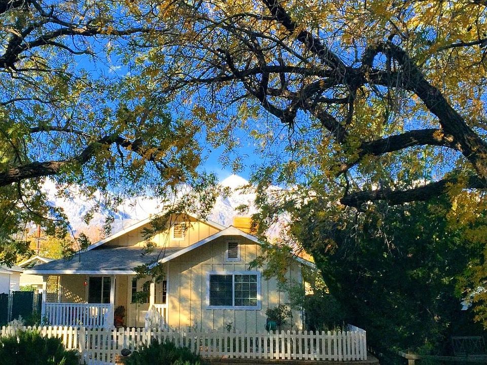 This bright and spacious 3 bedroom, 2 baths home features an open floor plan with vaulted ceilings, gorgeous new wood laminate flooring throughout the main living areas and a large 2.5 car garage with built-in shelving units and a workbench. Located on one of the most coveted, tree-lined streets in Independence, this inviting home built in 2003 is situated in a quiet and friendly neighborhood with attractive homes across from a green belt and LADWP leased land. The cheerful, well-designed home features a centrally located kitchen and living area, separating the two bedrooms and single bath in the front of the house from the large master bedroom and bath privately situated in the back. Entertain family and friends in the beautiful living space inside, relax in the shaded sitting area on the manicured back porch amongst mature cherry and apricot trees and enjoy your morning coffee on the inviting front porch with wonderful views of a horse pasture.View this gorgeous home in a great neighborhood and community, fall in love with its designer features and possibilities and make it your own.