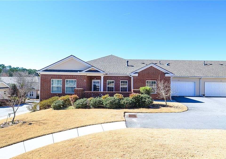 Welcome to 223 Villa Park Circle, a rare gem in Stone Mountain’s sought-after 55+ active adult community. Nestled on a premium lot, this exceptional home offers serene views of lush green space and is just a short stroll from the clubhouse and pool—perfect for an active and social lifestyle. From the moment you arrive, you'll appreciate the private driveway with ample parking and a charming front patio, an ideal spot to enjoy your morning coffee in the gentle sunlight. Step inside to discover an inviting open floor plan, where the spacious great room features a cozy fireplace and seamlessly flows into a stunning white kitchen. Designed for both beauty and function, the kitchen boasts elegant granite countertops, a gas cooktop, double ovens, a custom skylight that floods the space with natural light, and a central island with barstool seating. A versatile front flex room provides endless possibilities—use it as an office, gym, craft room, or sunroom, all bathed in natural light. The private primary suite is a tranquil retreat, complete with a tray ceiling, an expansive walk-in closet, and a luxurious ensuite featuring double vanities, a tiled shower with a bench, and a private water closet. The thoughtfully designed split-bedroom layout includes two additional guest bedrooms that share a spacious, well-appointed hall bath. Ample storage is found throughout the home, including generous linen closets. The conveniently located laundry room offers direct access to the garage, ensuring effortless, stepless entry. Designed with accessibility in mind, this ADA-accessible home provides ease of living in a prime location—just minutes from shopping, dining, and major highways. Don't miss this rare opportunity to own a beautifully designed villa in a vibrant, amenity-rich community!