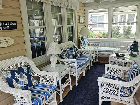 Welcome To This Beautifully Maintained, Year-round Home. This Home Offers Comfort, Character, And Energy Efficiency. The Enclosed Glass Front Porch Invites You To Relax And Unwind, While The Cozy Living Room With Its Gas Fireplace And Sun-filled Windows Makes Every Evening Special.enjoy Meals In The Spacious Dining Area Near The Kitchenwith A Side Porch Perfect For Morning Coffee Or Summer Breezes. The Galley-style Kitchen Is Both Efficient And Stylish. A Formal Dining Room Leads Into The Spacious Family Room Which Features A Second Fireplace And Warm Gathering Spaces For Friends And Family. Just Off The Family Room, You'll Find A Versatile Bonus Room Ideal For A Small Bedroom, Craft Space, Or Home Office Plus A Full Bathroom Nearby. Upstairs, Discover Three Inviting Bedrooms And A Beautifully Updated Full Bath. The Eco-friendly Roof Boasts 14 Solar Panels, Providing Electricity Throughout The Home Saving On Utility Costs While Embracing Sustainability. A Detailed List Of Available Furniture For Purchase Is Also Provided, Making Move-in Seamless. This Home Is More Than Just A Place, It's An Experience. Lakeside Is Gated From Memorial Day To Labor Day. Rules And Regulations As Well As 99-year Lease Apply. A List Of Improvements Is Provided.