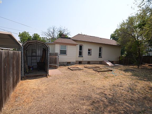 This Victorian Cottage has a local historic designation & boasts high ceilings, main level living, and large rooms. The huge lot has back access to a carport and comes with two yards, a motorcycle shed, and covered patio with an outdoor brick oven. It even has a English Walnut tree (good for eatting) in the east yard. All the rooms are on the Main level with lots of storage in the unfinished basement