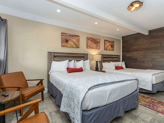 Enjoy free Wi-Fi, flat-screen TVs, in-room coffee makers, and plush bedding, with convenient access to Kanab's top dining and shops. Plus, with Zion, Bryce Canyon, and Grand Staircase-Escalante just a short drive away, your downtime can be filled with breathtaking exploration. Stay longer, save more, and experience comfort, convenience, and a prime location at Flagstone Inn.