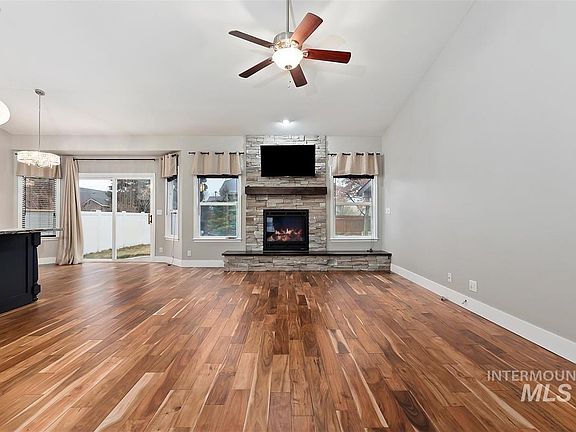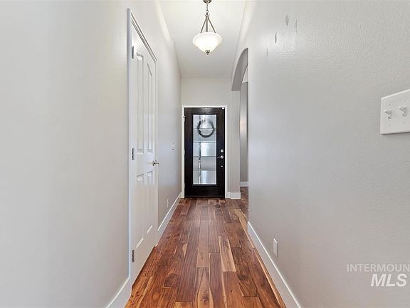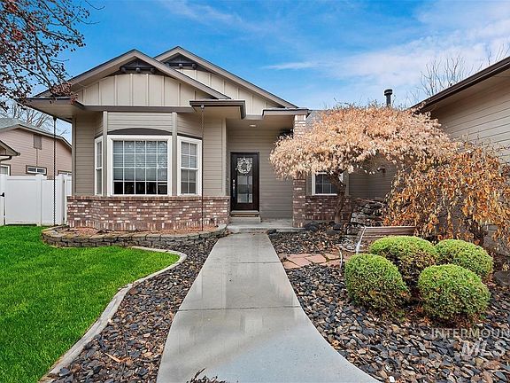 This house & street are special! Custom remodeled w/loads of storage! Kitchen has new cabinets, awesome honed granite island on wheels, 3 ovens (two-gas, one-electric), skylight, vaulted ceilings & a massive pantry (6'x14'), and 50yr engineered hardwood floors. New lighting and hardware throughout the home. Great room has gas fireplace with long storage bench in front & stone all the way to the ceiling. Front bath has granite counters and awesome tub with waterfall tile & 3/4" glass door. Master has walk-in closet & a 12' additional closet, granite, jet tub & tile floors. Third bay of garage has a back garage door so you can drive through to 12x18 workshop in the back with carport cover. Includes his/her garden shed, new large patio cover with tile brick. The trees are amazing! Scarlet Oaks, Forester Elm, Sky Locust, huge Japanese Maple & Crabapple in front. All mature, great for shade. New roof 2022, HVAC (serviced twice a year) & tankless water heater are in great shape. Three 220v plugs. Downtown Meridian