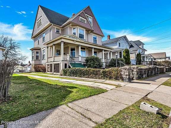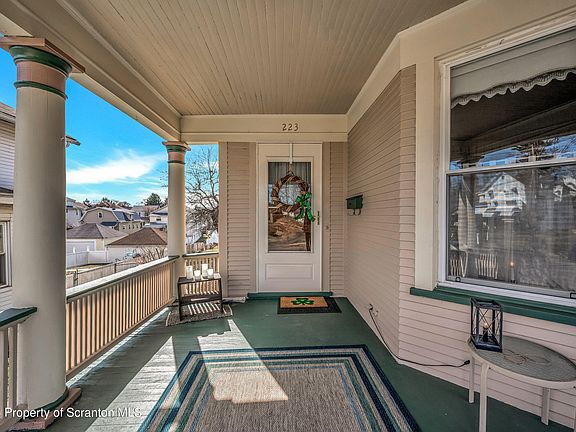Charming Dunmore home offers 4 bedrooms, eat-in kitchen with adjoining butler pantry, formal dining room for family dinners, large welcoming foyer opening to adjoining family room with fireplace & another sitting room. 2nd floor is accessed by both front or rear staircase to bedrooms & full bath. Cozy enclosed porch is off the kitchen with access to the back yard & 2 car garage. Walk out basement has laundry area, work bench & lots of storage. Walk up attic offers unfinished additional living space. This comfortable home won't last long. All information deemed reliable, but not guaranteed & all measurements are approximate,