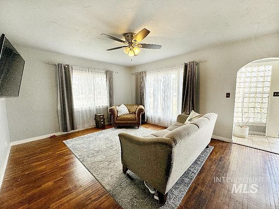 Lots of CHARM in this Mid Century large corner lot home with beautiful original hard wood floor. Kitchen & bathroom was updated in 2015. Air conditioner was updated 2018. Home has central vacuum system & gas forced air furnace. This 2 bedroom 1 bath home has a large front room with the original small plank hardwood floor that has been restored and refinished. Kitchen includes stainless steel appliances and full tile back splash with double corner window. Bathroom has tile shower/tub combo. The exterior of the home still has a very classic feel but also has good improvements like new windows and a new roof. The kitchen and bathroom have been fully updated with tile surround and new cabinet. Very comfy & easy living!!