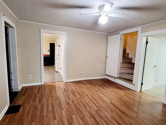 Great home ready for Showings! You will notice the large Wisteria Bush at the front of the home. Walk into a living room or what was used as a dining room- notice there is a mail slot behind the door. Kitchen is plenty big enough for a table and chairs. All appliances stay - Stove, refrigerator, Microwave, Washer/Dryer. 2 Bedrooms on the main floor with one connected to the main floor bathroom that was remodeled 2017 with a walk in shower. There is a large Family room at the back of the home that also enters the main floor bathroom. Laundry is in it's own room off of the Family room. Upstairs has a full bathroom and a Bedroom- the dresser stays. Attic entrance is in the bedroom closet. Shared driveway spits off to the garage that has 1 garage door and the other half of the garage has been used as a workshop. The frame is still in place if someone wants to convert back into a 2 car garage. Along side the garage is a fenced in area that was used as a dog pen. Industrial Fan and table in garage stay but the Wall AC Doesn't work. Kitchen flooring new 2023, Family room flooring new 17. New roof 2016, furnace 2007 and electrical updated 2007. All appliances stay - not warranted.