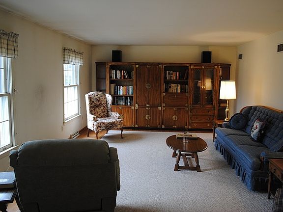 Yellow Cape Cod on one acre. Large Living Room, Kitchen/Dining Room could double as Family room/Kitchen. Great Views from dining room looking down on Frog Hollow Valley. 30x15 Deck off Kitchen.Two bedrooms on first floor. Hall and main Bath. 2nd floor has rough bath with dormer for 2 more bedrooms. Full unfinished basement, and two car attached garage.