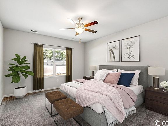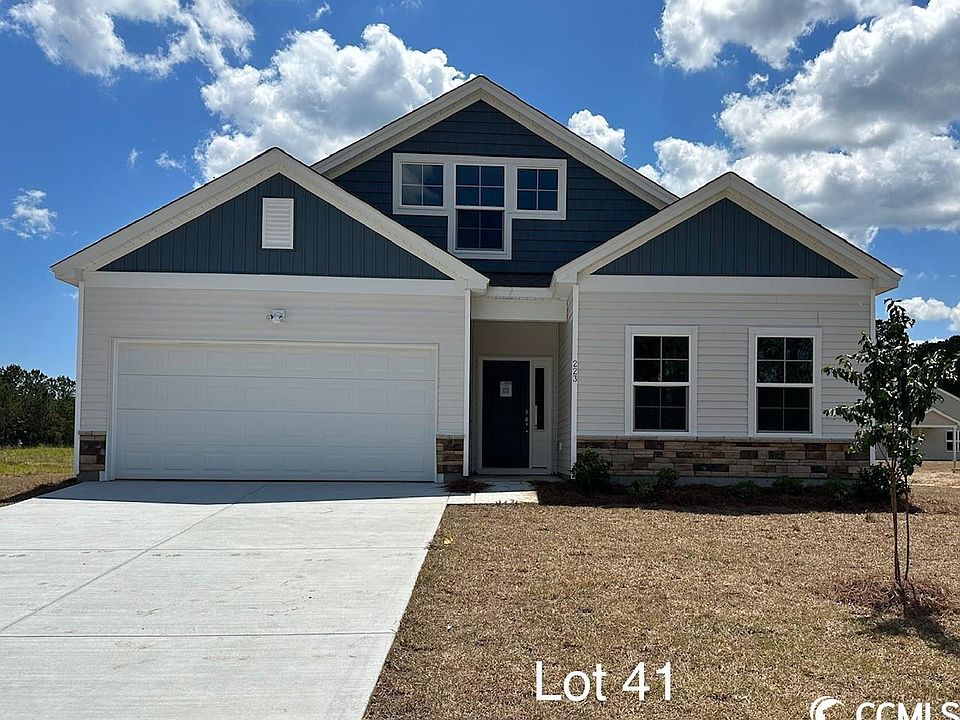 Awesome new community with large homesites just minutes from the beach.  This four bedroom, three bath home includes a fireplace and boxed ceiling in the family room.  The kitchen and dining area are all open to the family room.  The kitchen is complete with white cabinets, granite countertops and gas range.  Luxury vinyl flooring runs from the foyer throughout the main living areas.  You will enjoy your morning coffee on the rear coffered porch.  The primary suite located on the main level includes a boxed ceiling, double bowl vanity, shower with glass enclosure, linen closet and generous walk-in closet.  More features of this lovely home are crown molding, trimmed windows, pendent lights over the island and double pantries.  The fourth bedroom is private on the second floor and includes a full bath, generous closet and closet.    This home will be ready for you to move in this spring.  Pictures are of a similar home.