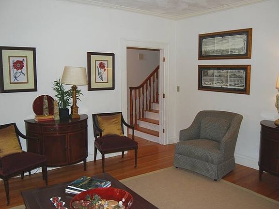 Entering from the left side of the main house is a sophisticated, sunny, four bedroom home on three levels. On the first floor there is a bright, open eat-in kitchen, a dining room, charming fireplaced living room and a first floor bedroom with a walk-in closet and en-suite bath. There are two bedrooms and a bath on the second floor, and a fourth bedroom, additional bath, and huge study on the third floor. Mixing the charm of the old and the new it is ready to move in and enjoy.