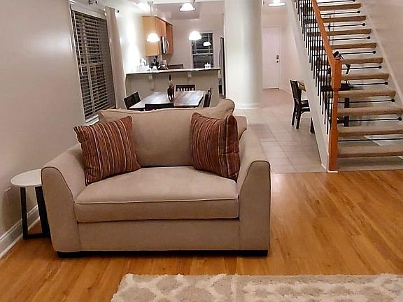 Welcome to your new home in beautiful New Bern, NC! Fully furnished with high end furniture. This two bedroom, two bathroom townhome with loft, patio and garage is the perfect place for a small family or couple. The townhome has been recently updated. You'll find a spacious living room with a cozy couch and love seat, a flat-screen TV in each room, and plenty of natural light. The kitchen is well-equipped with all the necessary appliances. A beautiful solid wood dining table makes for lovely entertaining. The downstairs master bedroom has a spacious queen-size bed and plenty of storage space. There is an en-suite bathroom with a shower and tub. There is a Samsung smart Washer and Samsung Dryer with steam cleaning features! Upstairs, you'll find a beautifully furnished second bedroom and loft with built-in desk that can be used as an office, or a play area. The second bathroom is located on the second floor and has a shower and tub. The backyard is the perfect place to relax and enjoy the outdoors. It has a large patio with seating and a grassy area with plenty of room to entertain. This townhome is located in a great neighborhood and is close to all the best restaurants, shops, and attractions in New Bern. If you're looking for a comfortable and convenient place in New Bern, this townhome is the perfect choice. 12 month lease. Monthly terms available. Owner pays for landscaping and HOA fees.