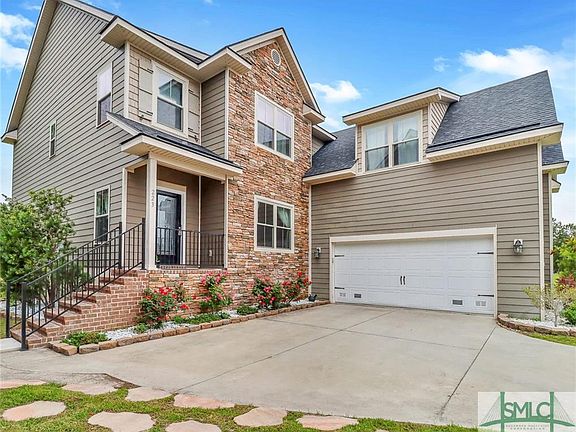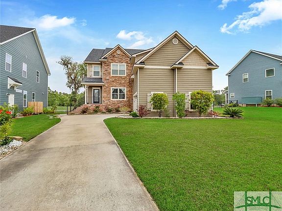 A nature lover's dream! Overlooking the 3rd hole of Sterling Links golf course, lovely oak trees, on a lagoon and beautifully landscaped lot, is your dream home! This gorgeous two story has stone accents, iron handrails, ornate front door, and draws you in for a closer look at this 5 bedroom, 4.5 bath beauty. The grand two story foyer showcases the beautiful staircase with wood tread steps and iron rails. The formal dining room with arched entry, wainscoting, wood floors flow to the family room with fireplace and into the keeping room, both with golf course views. In the kitchen, the island is a show stopper with stone details! There are an abundance of cabinets, granite counter tops, desk and breakfast room! Guest room and bath down. Upstairs, the grand Master Bedroom with large sitting area, overlooks the golf course and lagoon. Double sinks, soaking tub and separate shower are a few highlights of the master bath. A new A/C unit, new carpet, fresh paint, and huge bonus room and more!