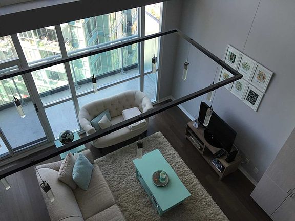 Modern, Spacious, 825 Sq Feet, 2 Storey Loft With 18 Foot Ceilings On A High (25th) Floor Of The Onyx Condominiums In Mississauga. The Whole Upper Floor Is The Bedroom, Full Bathroom And Has Stacked Laundry With Large Walk In Closet. The Lower Floor Includes The Den, Kitchen And Living/Dining Area And A Powder Room. Super Wide Balcony That Spans The Entire Width Of The Condo Where You Can Have Excellent Views Of Celebration Square