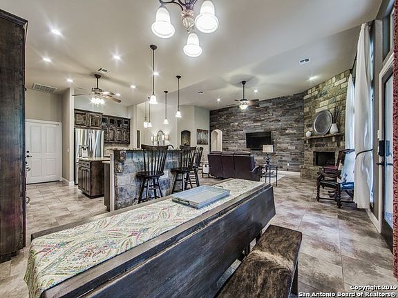 GORGEOUS custom Hill Country retreat wows with wood and ceramic tile floors, high ceilings, a spacious open living area and large kitchen perfect for entertaining. You won't want to leave the park-like yard studded with trees and recently completed professional landscaping. Other recent upgrades include a reclaimed wood wall, Aguasona water filter/softener and LED lighting. Wonderful community amenities and desireable Comal schools - welcome home!
