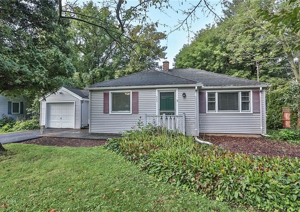 Great ranch offering approximate 1000 sq feet, with 2 large bedrooms and 1 full bath. Great room offers hardwoods and huge space, eat in kitchen with plenty of cabinets, breezeway area is a great mud room, one car attached garage. Wonderful private rear lot, walking distance to Spring Lake Park and four corners of Penfield, close to expressway 490 and access to the city. Easy maintenance vinyl sided exterior, ready to move into, call today!! Open house and first showings Saturday 9/14/2019 from 1 to 4 pm