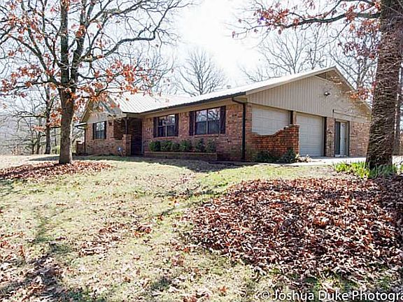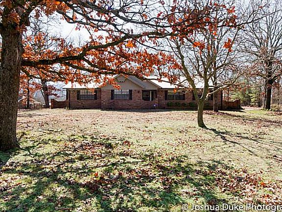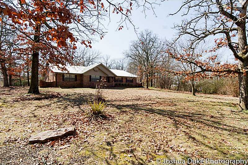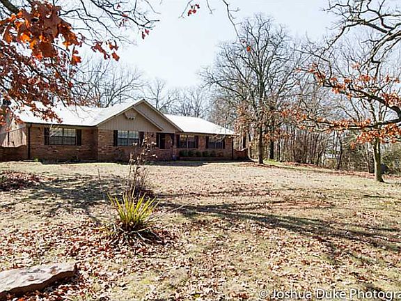 Charming ranch-style home situated a beautifully wooded 2.84 acre lot. This home has a great floor plan. Spacious living room has beautiful rock fireplace with wood insert. Formal dining room located between living room and eat-in kitchen. Newer appli,ances & refrigerator does convey with sale of house. Three bedrooms & two bathrooms with large laundry. Master bathroom has walk-in shower. Two car garage. Small storage shed. Neat & clean and move-in ready. Easy access to Hwy 62 & I-49.