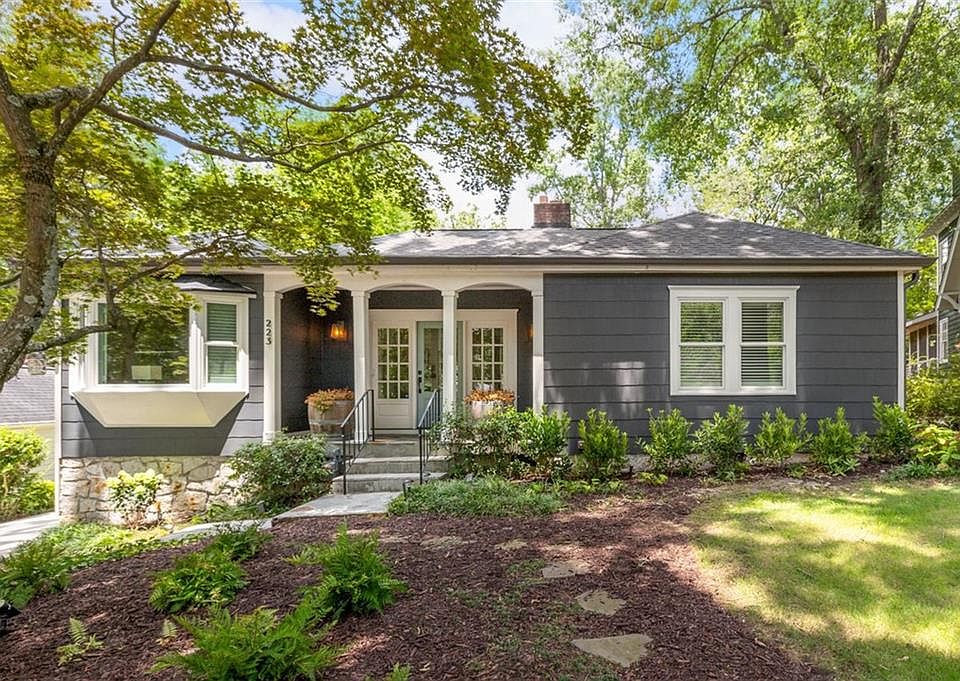 Located in the heart of Decatur, this charming bungalow offers a prime location near schools, shopping, and dining. The inviting front porch warmly welcomes guests and neighbors, while inside, the modern kitchen flows seamlessly into a spacious den, perfect for hosting. The fully renovated open floor plan ensures ample space and easy movement throughout the home. The main level master suite, a separate home office or playroom, and a large laundry room add to the home's appeal. The screened porch, with valued ceilings, is a rustic retreat for all seasons, featuring reclaimed wood, a custom swing bed, wiring for a large-screen television, and a fireplace. The detached building behind the 2 car carport is perfect for an additional home office or exercise room, making it a wonderful treasure in Decatur!