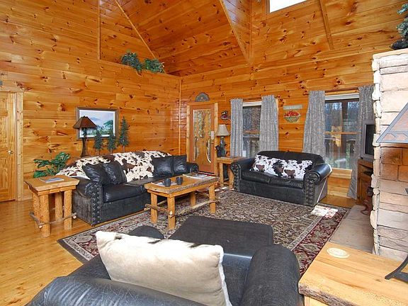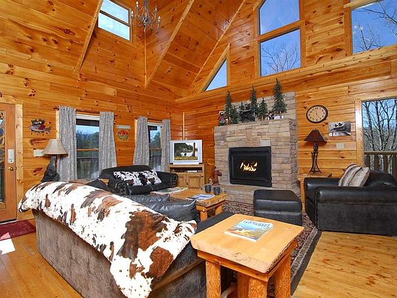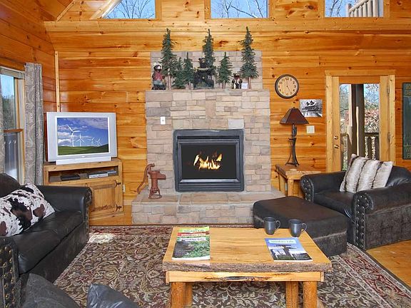 Very nice 2 bedroom, 2 bath cabin in a private setting with a nice view. Located just outside of the Arts & Crafts Community and convenient to both Gatlinburg and Pigeon Forge. Sleeps 8 on overnight rental. Features include an all wood interior, open floor plan, hardwood floors, cathedral ceiling, 3 interior fireplaces and 1 exterior fireplace, a whirlpool tub in both bedroom suites, and an upstairs loft with a pool table. Comes furnished and decorated! Offered at a great price!