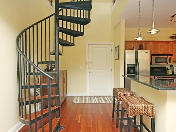 Gorgeous 2-level Penthouse built in 2004 has Rooftop Terrace. Popular gated boutique community. Granite countertops, stainless appliances, island, brazilian cherry floors; 2nd level BR w/sitting area. Garden tub & separate tile shower; Sitting balcony on ml overlooks salt water pool. Upgrade Features: 2-Story Foyer, Skylight, Enlarged ml walk in Closet, Trey ceiling & hardwoods in ml BR, 2 Heat/Air systems. Laundry Rm-Washer/Dryer stays. Convenient to major interstates. Walk to theatre, restaurants & more. Security access building w/elevator. 2nd Rear exit. FHA apprvd
