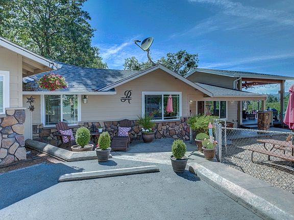 Panoramic View w/Beautiful Country Setting! Paved driveway leads to Wonderful mountain & valley views! Sitting on 2.65 acres, home was built in 1945 but has been updated & remodeled beginning in 2004. Featuring 2 bdrms, 2 baths, approx. 1766 sqft., a large open kitchen, lots of counter space & cabinets, Large living room w/vaulted ceiling & slider to back patio which overlooks large backyard. Home has a split floor plan w/large master bdrm at one end & bdrm, bath and family room at the other. Huge deck in front, off family room which is partial covered w/fan. Taking in the incredible view from the deck, it also gives access to an above ground pool & a 9-hole putting green. There is a detached 3 car garage, storage shed & single car garage for garden equipment, storage, etc... Lots of parking including RV and room for all the toys. A mixture of pasture & wooded areas. Also, zoned R-1-10 allowing for possible development. Just minutes to town, close to shopping, schools & hospital.