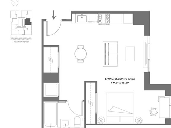 The unit boasts high-end finishes, top-of-the-line appliances, and sleek design elements that bring sophistication to your everyday living. Want even more flexibility? You have the option to install a temporary wall, transforming this already generous studio into a functional one-bedroom apartment.