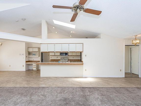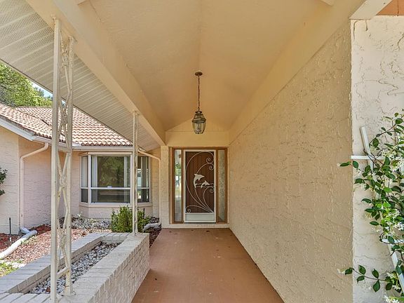 Wonderfully maintained,situated on a fenced corner lot,this home has an appealing exterior, with weather/fire resilient tile roof. Once inside,this open floor plan w/great room & dining area also includes 3 large BR's,2 baths, & an oversized 2 car garage. The skylight between the great room & the kitchen provides extra warmth & natural lighting. Eat-in kitchen has newer appliances, breakfast bar,& built-in desk. Jacuzzi tub w/separate shower in the master bath & double closets in the master BR. White vinyl fence for the private backyard so you can enjoy your swimming pool (new pool pump), & extended tiled lanai (w/double outdoor ceiling fans), Screen enclosure & surrounding rock barrier help to keep the pool free of debris. Come see today!