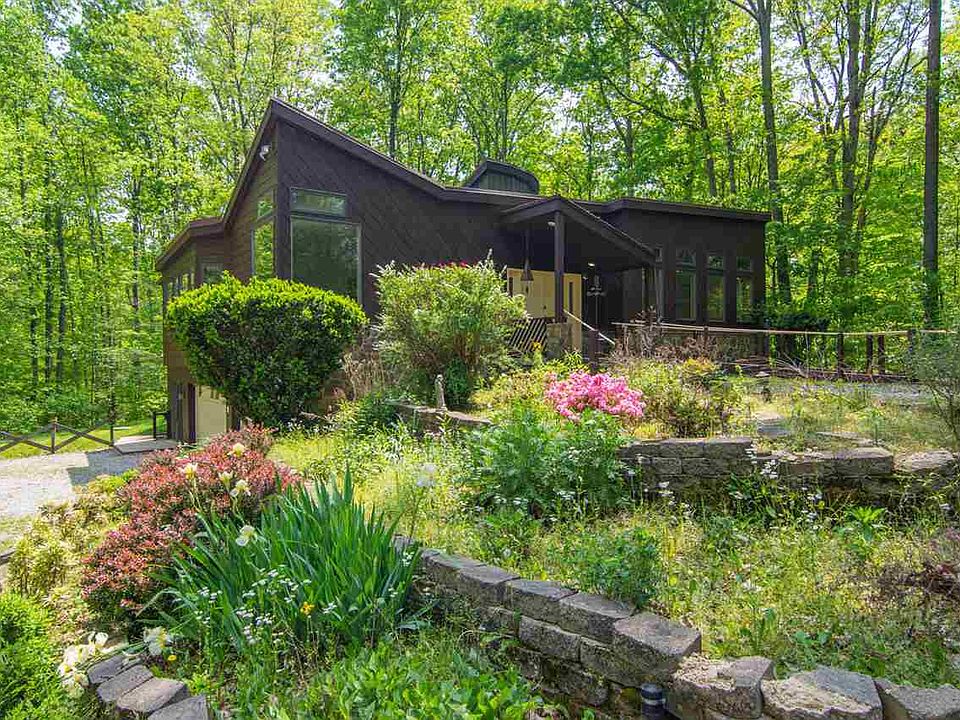 Custom contemporary 3-4 BR home on 10 acres. Recently featured in Homes & Lifestyles magazine for its architectural style and attention to detail, this is the thoughtful, real-life construction of an imagined dream home in the woods. The sellers built the space to accommodate their love of nature and the arts, and they considered themselves custodians of the beautiful surrounding trees and acreage. Large windows encourage you to cook, enjoy music, or read while communing with the great outdoors. A circular great room designed for its acoustics has hosted live performances for small crowds. The main level also provides a large kitchen with custom cabinetry, 2 bedrooms, 1.5 baths and the easy potential to convert one of 2 studies into another bedroom. The walkout lower level has a third proper bedroom and full bath, a large garage, and impressive workshop that can be converted into more living space. Certain features may appeal to those who want an accessible home. A fully functioning dumbwaiter, for instance, can bring your groceries up from the garage. Laundry is on the main floor. Some lights and windows have automatic or remote capabilities. Finer details like hardwood floors, exposed beams, and one-of-a-kind doors, trim, and shelving (made by the woodworker/seller) add to the home's unique point of view. Minutes to 37 and a few miles to IU and downtown. If you're looking for land, character, and convenience, this place should not be missed.
