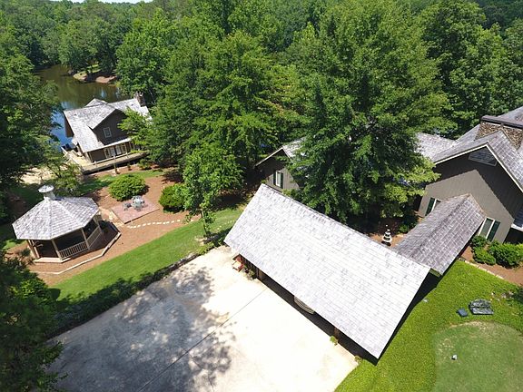 This amazing lake front home is on the quiet Estate Dr. The great room has soaring 25ft vaulted wood beam ceiling, soaring wood burning stone fireplace, 11ft trey ceiling in dining room! Kitchen has been updated with granite counters and stainless steel appliances. The large master bedroom suite has trey ceiling, built-ins, large attached bath with huge walkin closet, 2 sinks, travertine tile, separate shower, jetted tub, access to back porch. other 3 bedrooms have their own attached bath, trey ceiling and access to the back porch. Basement has a bedroom, half bath and 2nd LR. The first guest house on the water has been completely finished out. It is over 2800 sq ft with a massive master suite upstairs, kitchen & great room main level and 2 bedrooms, bath and den in walk out basement There is just so much to this property! Acreage, 750 feet of water front, 2 guest houses (approx. 2800,900 sq ft!), Gazebo with water and electric for future outdoor kitchen. House has second story siting room with screened porch overlooking lake. Large deck along back of house and wraps around to two sides. Hardwood or tile throughout the main level. Guest house has full kitchen main and kitchenette on lower level. Property is in the city of Auburn.