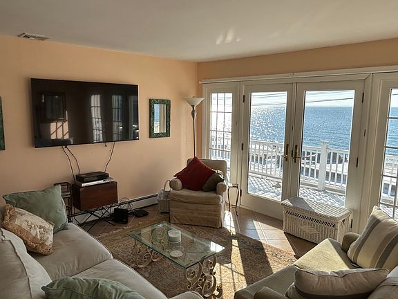 Perfect beachfront rental at the private end of Fairfield Beach Road! Raised three bedroom, 1.5 bath with open floor plan and full ocean views, and front deck that overlooks your own 50 feet of private sandy beach along Long Island Sound. Enjoy stunning sunsets, daily beach walks, and barbeques in back garden. Patio area under raised house boasts ping pong table, sea breezes, beautiful views, shade and night lighting. Rear deck overlooks creek as well. Rent by the night or by the week (reach out for pricing) or during the school year at 8.5k/month. Furnished, plentiful easy parking. Showings available after phone call.