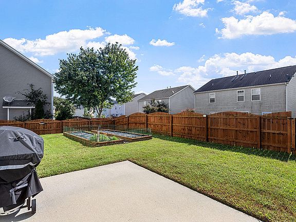 Meticulously maintained 3-bedroom home just 12 minutes from downtown Raleigh, in a friendly neighborhood with a community pool. This beautiful 3-bedroom, 2 1/2-bath home welcomes you with hardwood floors in the foyer, office, and dining room, ceramic tile in the kitchen, and new carpet throughout. The kitchen, featuring granite countertops, tile backsplash, and bar height seating area over the sink, is perfect for entertaining as it opens up to the family room. The family room features a direct-vented fireplace to warm you through the winter. The family room's vaulted ceilings and ample windows illuminate the welcoming space for family gatherings year round. Upstairs, you'll find the primary suite with a walk-in closet and a secondary full-height closet. The primary ensuite bathroom boasts a floor-to-ceiling custom tiled shower featuring a frameless shower door, garden tub, double vanity, and tile floor. The second floor features a spacious bonus room with a closet, two secondary bedrooms, and a full bathroom. Outside, you'll find two raised garden beds with seasonal irrigation, a fenced-in yard for your pets to roam free, a small patio access, and a rear gate for access to the rear property line.18-hole championship Hedingham Golf Club is a stone's throw away, offering public tee times.