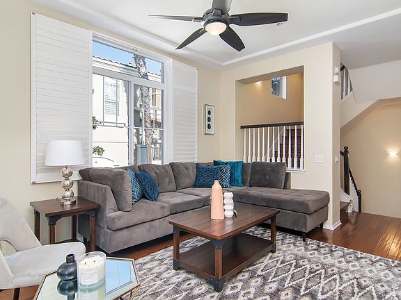 Highly Upgraded End-Unit Townhouse In Liberty Station!!! Upgrades include Gorgeous Wood Floors, Granite Countertops, Upgraded Cabinetry Throughout, Stainless Steel Appliances, Plantation Shutters, Glass Insets in Kitchen Cabinetry, Gorgeous Stone Master Shower, Epoxy Flooring in Garage and Fresh Paint Throughout! Home Also Features Two Patios, Focal Gas Fireplace in the Living Room, Kitchen Island with Bar Seating, Two Master Suites and a Third Bedroom which has its own En-Suite Bathroom and Private Patio, Front Loading Washer and Dryer and Ceiling Fans!