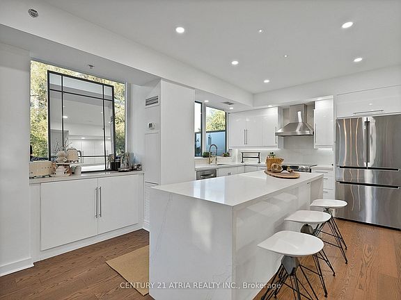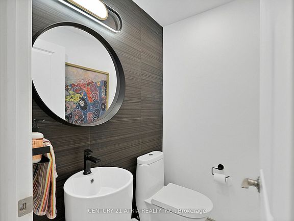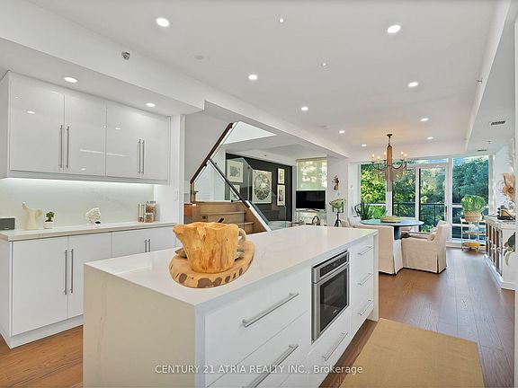 Welcome to this rare 4-storey corner townhome, offering the spacious feel of a detached home without the upkeep. With 2,536 sqft of living space and three wrap-around terraces overlooking Mimico Creek, this home is steps from Lake Ontario and perfect for entertaining. The gourmet kitchen features an oversized quartz island, and the airy main floor easily accommodates a large dining area and TV lounge. Head up to the rooftop terrace, complete with a gas line and water hook-up, for a relaxing escape. The home includes a private garage with direct entry, newly renovated designer bathrooms, glass railings, and polished hardwood floors throughout. Spacious bedrooms, including a primary suite with a chic dressing area, offer comfort and style. The oversized lower level is perfect for working from home or recreation, while the top-floor loft provides an additional spot to unwind. This townhome combines the luxury of space with low-maintenance living, ideal for today's lifestyle.