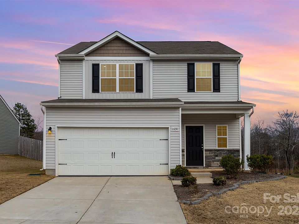 Built in 2021, this home features a practical layout across 1,824 sq ft of living space. The main level is an open floor plan with living room, dining area, and a convenient powder room. The beautiful modern kitchen is equipped with stainless steel appliances and a kitchen island - all kitchen appliances convey including refrigerator. A sliding door from the dining area opens to the backyard patio. On the upper level you will find the primary suite, with vaulted ceiling, ensuite bathroom, and walk-in closet. Two additional bedrooms, an additional full bath, and a laundry closet complete the upper level, plus a loft that could serve as a media space, office, or play area. There is plenty of storage in the two-car attached garage. This home's location between University Area and Mint Hill provides easy access to local amenities, and is just minutes from Reedy Creek Park for all your outdoor recreation.