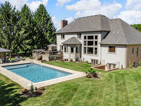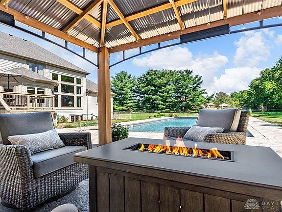 Situated on just over 2 acres in the Sugarcreek Twp pocket of Spring Valley, this 6000+ sq ft home captures that perfect balance of a private retreat with a welcoming neighborhood feel. Five bedrooms and four and a half baths include a first-floor primary suite and a second primary upstairs, with laundry on both levels to keep life simple. A two-story entry opens to the great room where 20-foot ceilings and an expansive wall of windows flood the space with natural light; multiple living areas offer easy flow without feeling crowded. The kitchen is a highlight with a leathered granite island, granite counters, and a Fisher & Paykel induction cooktop, complemented by double ovens and a convection microwave that functions as a third. The walkout lower level extends the footprint with 9-foot ceilings, daylight windows, a gas fireplace, a full bar, surround sound, a true fifth bedroom with egress, and generous storage; full-door attic access off an upstairs bedroom adds even more space and future potential. Outdoor living is ideal for Ohio seasons with a newer, sparkling heated pool featuring an automatic cover that creates a secure barrier when closed, plus a stamped-concrete patio, gazebo, refreshed landscaping, aluminum fencing, and a new deck stepping to open lawn and a wooded backdrop. Practical upgrades underscore long-term confidence—dual HVAC, recent roof, whole-house generator with surge protection, updated mechanicals, and septic service—served by a 3-car garage and broad driveway, in a quiet, walk- and bike-friendly pocket near parks and within an easy drive of Wright-Patterson Air Force Base. Quality build, thoughtful layout, and indoor-outdoor flow—easy to love, even easier to live in.