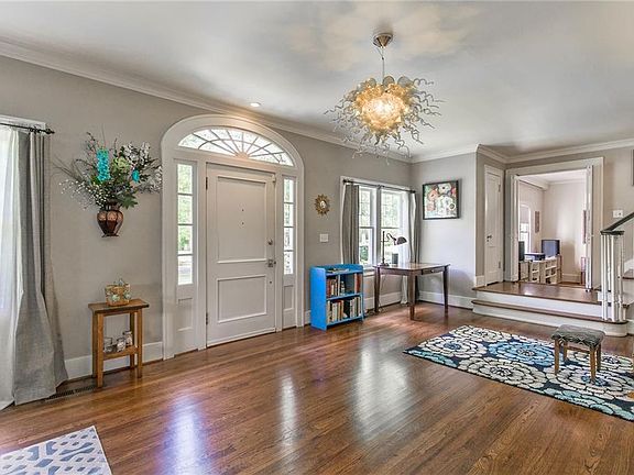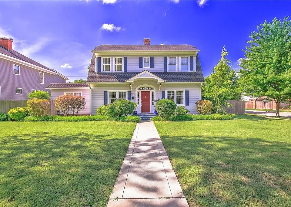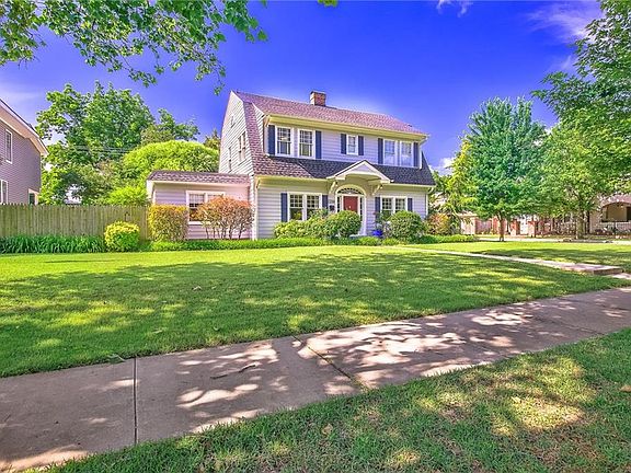 Natural light highlights every gorgeous detail of this charming historical home. Updated with modern conveniences and beautiful hardwood floors. Living has an open light and bright floor plan, picture perfect staircase with elegant railing, nice mock fireplace with log insert, wood frame glass doors that lead into the dining, and enough room for several sitting areas. Dining is very spacious and will hold large pieces. Kitchen is trendy and bright with Viking gas stove, Viking double door refrigerator, built-in microwave, quartz countertops and fun stylish backsplash. Breakfast nook is surrounded by windows and built-ins and has a vibe all its own. Media/Flex Room on first floor has its own full bath and closet; could be converted into a large third bedroom. Upstairs is a huge master with its own sitting area and bath in addition to another bedroom and full bath. Huge corner lot features trees, private parking, is fully fenced and has detached garage. Short distance to Plaza District!